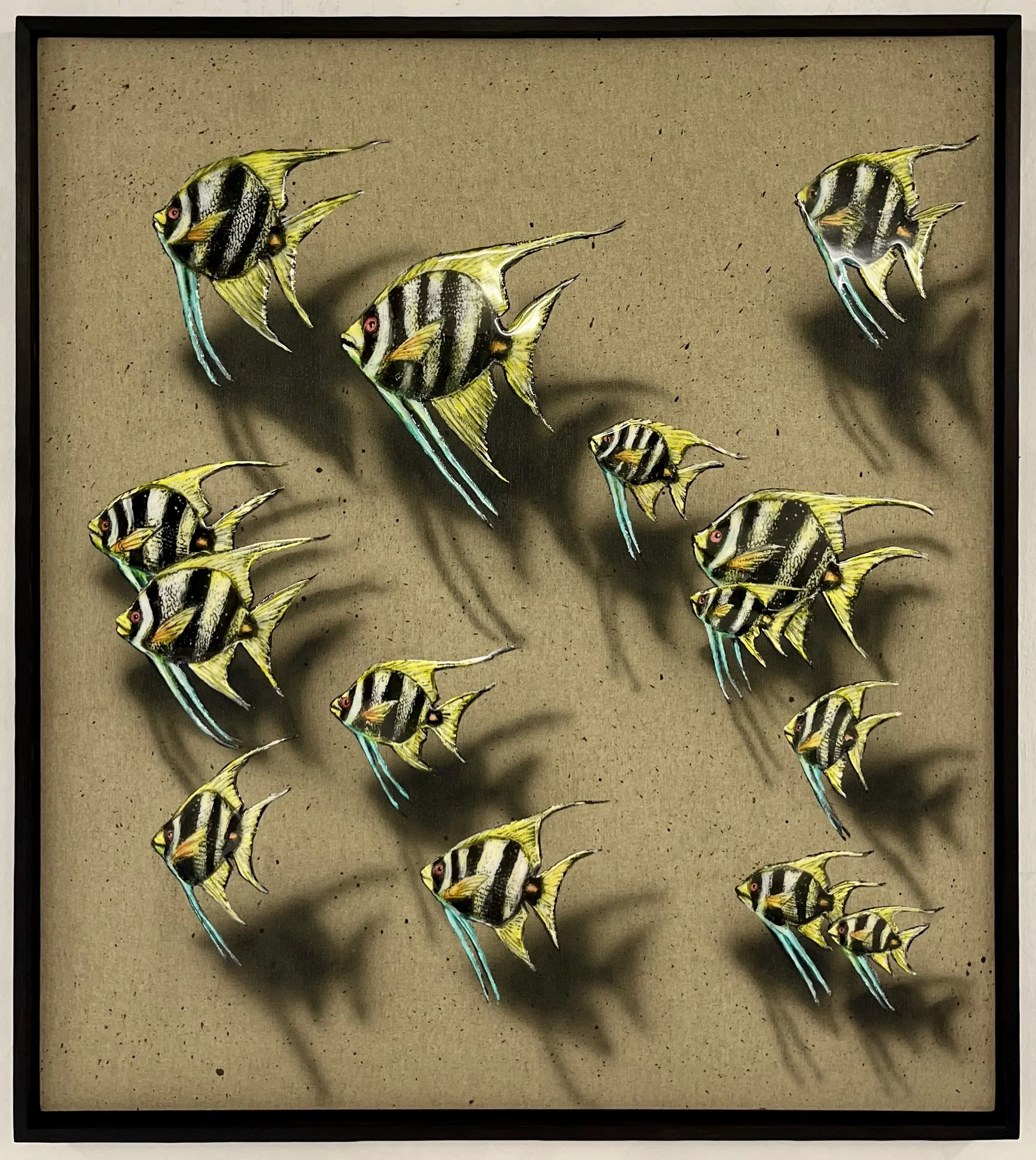 Fine Feathers, 80x90cm, mixed-media on linen, 2026.